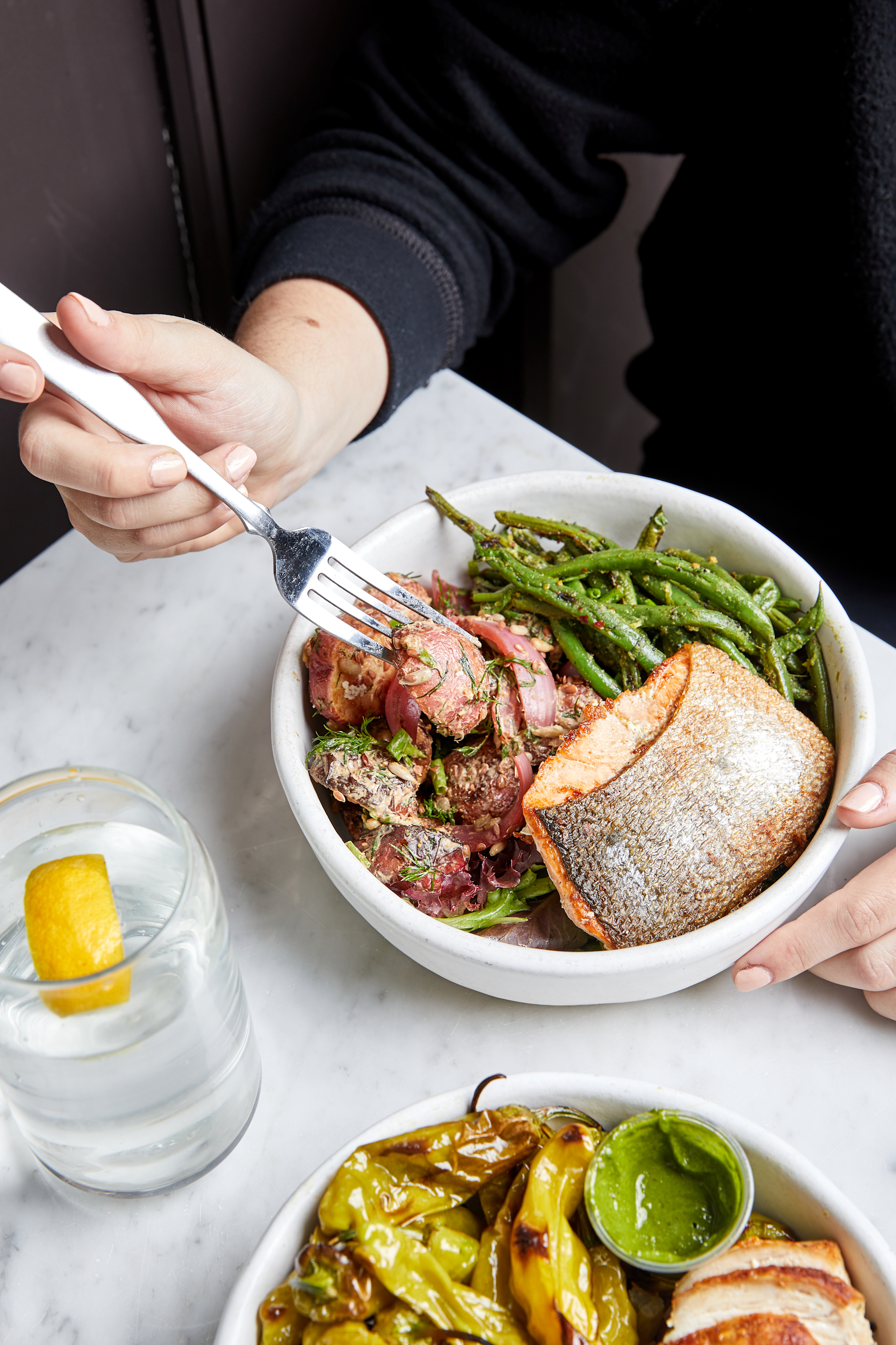 On any given weekday, millions of office workers descend on downtown streets in search of a decent lunch. At noon on a Tuesday in December, some have found themselves at Dig Innon East 52nd Street in New York, in line for a healthful-but-hearty grain bowl. Four employees dish out portions of brown rice and Brussels sprouts as several others speed around the open kitchen, replenishing trays of wild salmon and charred chicken. Off to one side, six employees bustle around two banks of steam tables, frantically assembling an endless stream of desk lunches for the growing number of customers who decide not to make the trek. An open laptop displays incoming orders from three different delivery platforms. Every few seconds a digital klaxon announces the arrival of another order, giving the feel of a nuclear power station on the verge of a meltdown.